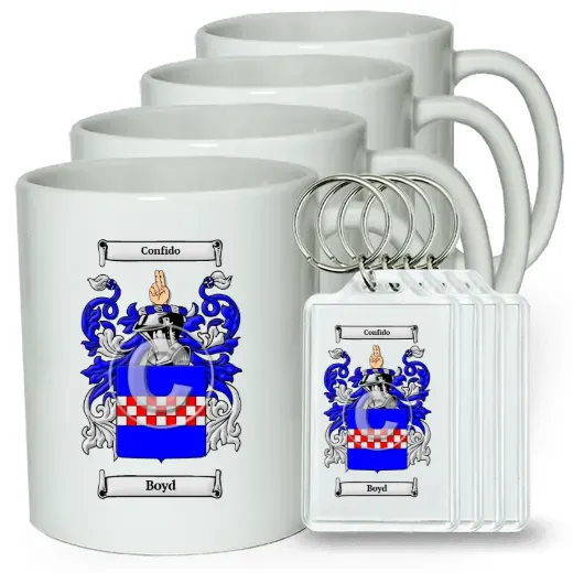 Set of 4 Coffee Mugs and Keychains