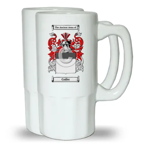 A Set of Two Ceramic Beer Steins, (Same Coat of arms on both Steins)
