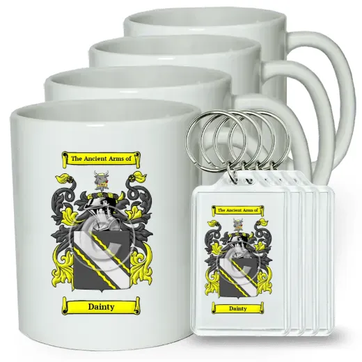 Set of 4 Coffee Mugs and Keychains