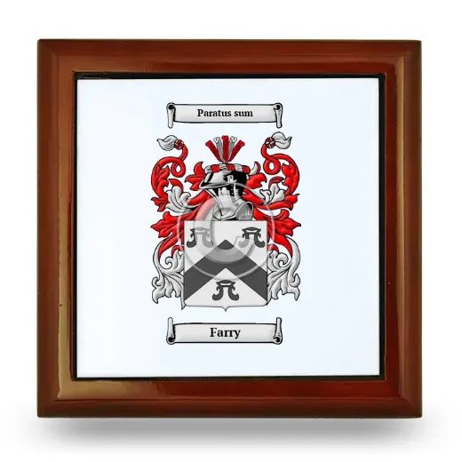 Made from the finest mahogany, this box has a brilliant lacquered cherry finish. Inside, you'll find cream-colored velvet. The hinged lid makes opening and closing this jewelry box easy. The Coat of Arms is heat-pressed onto a ceramic tile on the top of the box.