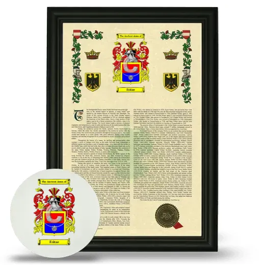 The Armorial will be framed with our custom solid 1" wood frame which beautifully compliments the earliest rendition of your Coat of Arms, Family Crest, and Surname History.