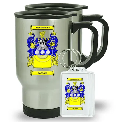 Pair of Travel Mugs and pair of Keychains