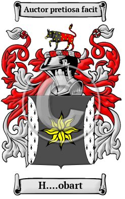 | H....obart History, Family Crest & Coats of Arms Etymology of H....obartWhat does the name H....obart mean? The name H....obart has a rich and ancient history. It is an Anglo-Saxon name that was originally derived from the baptismal name Hubert. 1 As the naming tradition grew in Europe baptismal names began to be introduced in many countries. Baptismal names were sometimes given in honour of Christian saints and other biblical figures. There are very few Christian countries in Europe that did not adopt surnames from these religious figures. However, another source claims the name could have been a nickname "from the small Falcon or Hawk so called (Old French hobert, a hobby, hawk)." 2 Early Origins of the H....obart familyThe surname H....obart was first found in Norfolk as "Hubbard is a characteristic Norfolk name. The early form of the name in this and the neighbouring counties, both in Domesday times and in the centuries immediately following, was Hubert, occasionally written Huberd; and we find that Robert Hubert or Hoberd was rector of Seaming at the close of the 14th century." 3 Over in Yorkshire, the Yorkshire Poll Tax Rolls of 1379 listed: Petrus Hubard; Alicia Hubard; Isabella Hoberd; and William Hoberd as all residing there at that time. "The Visitation of Essex (1541) gives the surname of the family of Huberd indiscriminately as Huberd, Hobert, Hubert, and Hobart. Memorials of a family spelt indifferently Hubbard or Hobart are (or were) to be found in Little Plumstead Church, Norfolk." 1 Some of the family did migrate to Scotland, but much later on and in small numbers: "Patrick Hobart, was burgess of Dundee in 1649." 4 Early History of the H....obart familyThis web page shows only a small excerpt of our H....obart research. Another 177 words (13 lines of text) covering the years 1190, 1507, 1560, 1588, 1593, 1611, 1621, 1624, 1625, 1626, 1628, 1632, 1647, 1654, 1656, 1657, 1667, 1683, 1695, 1699, 1746, 1756 and 1797 are included under the topic Early H....obart History in all our PDF Extended History products and printed products wherever possible. H....obart Spelling VariationsBefore English spelling was standardized a few hundred years ago, spelling variations of names were a common occurrence. Elements of Latin, French and other languages became incorporated into English through the Middle Ages, and name spellings changed even among the literate. The variations of the surname H....obart include Hobart, Habart, Habbard, Hobert and others. Early Notables of the H....obart family- Sir James Hobart (d. 1507) of Monks Eleigh, Suffolk, Attorney General during the reign of King Henry VII. , He was the youngest son of Thomas Hobart of Leyham in Norfolk. 5