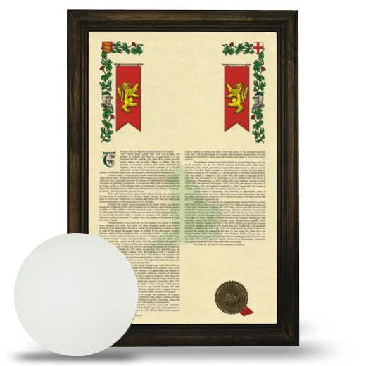 Framed Surname History and Coat of Arms - Black