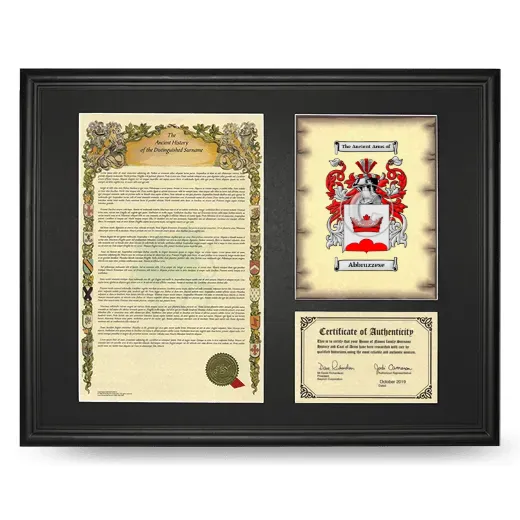 Framed Surname History and Coat of Arms - Black