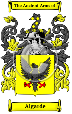 England Etymology of AlgardeWhat does the name Algarde mean? The ancient and distinguished surname Algarde is of two distinct origins. It is believed that the name was originally derived from the Old English word "ealdgar," meaning "noble spear." Alternatively, in some instances, the name signifies "of Altcar," a village near Ormskirk in Lancashire. 1 Early Origins of the Algarde familyThe surname Algarde was first found in Norfolk, where William Alker was listed in the Pipe Rolls of 1212. In this instance, the name is probably derived from the Old English "ealdgar," making it likely that this branch of the family is of Anglo-Saxon descent. William de Altekar was recorded in the "Calendar of Letter Books" of London in 1341; the preposition "de," as well as the spelling of the name, indicates that this branch of the family hailed from Altcar in Lancashire. 2 It is likely that the family estate of this branch was still located in Altcar (Great Altcar), Lancashire at this time. "This place seems to be the Acrer of the Domesday Survey, at which period it was held by Uctred; it was afterwards held by the abbots of Merivale, and continued with them till the Dissolution. The parish takes its name from the river Alt, and the word car, meaning low land. " 3 So as far as the origin of the place name is concerned there is some doubt, but there is no doubt that many of the family originated in West Lancashire. Early History of the Algarde familyThis web page shows only a small excerpt of our Algarde research. Another 78 words (6 lines of text) covering the years 1549 and 1866 are included under the topic Early Algarde History in all our PDF Extended History products and printed products wherever possible. Algarde Spelling VariationsUntil the dictionary, an invention of only the last few hundred years, the English language lacked any comprehensive system of spelling rules. Consequently, spelling variations in names are frequently found in early Anglo-Saxon and later Anglo-Norman documents. One person's name was often spelled several different ways over a lifetime. The recorded variations of Algarde include Alker, Alkar, Altcar, Alkire, Alger, Algar, Allgar, Allger, Allker and many more. Early Notables of the Algarde familyMore information is included under the topic Early Algarde Notables in all our PDF Extended History products and printed products wherever possible. Migration of the Algarde familyThousands of English families boarded ships sailing to the New World in the hope of escaping the unrest found in England at this time. Although the search for opportunity and freedom from persecution abroad took the lives of many because of the cramped conditions and unsanitary nature of the vessels, the opportunity perceived in the growing colonies of North America beckoned. Many of the settlers who survived the journey went on to make important contributions to the transplanted cultures of their adopted countries. The Algarde were among these contributors, for they have been located in early North American records: Andrew Alger and Thomas Allgar, who both settled in New England in 1632; Arthur Algar, who came to Virginia in 1731; James Alger, who arrived in Rhode Island in 1768.