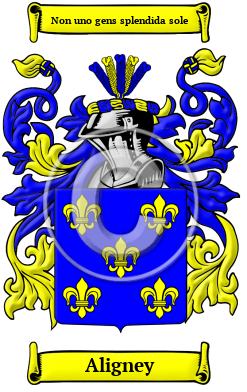 The surname Aligney was first found in Poitou, where this ancient family has held a family seat from early times.