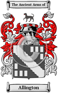 | Allington History, Family Crest & Coats of Arms Etymology of AllingtonWhat does the name Allington mean? The name Allington arrived in England after the Norman Conquest of 1066. The Allington family lived in Allington, in one of the many places so named throughout southern England. The reason for the multiple villages lies in part from the literal meaning of the place name "farmstead of the princes," from the Old English word "aetheling" + "tun." 1 There are at least three listings in the Domesday Book of 1086: Adelingetone (Lincolnshire); Adelingtone (Wiltshire); and Alintone (East Alington, Devon.) In this latter case, the place name could have derived from "farmstead associated with a man called Aella or Aelle," from the Old English personal name + "ing" + "tun." 1 Allington Castle is a stone-built moated castle in Allington, Kent that was restored in 1895 to its former full glory and is today open to the public. Early Origins of the Allington familyThe surname Allington was first found in Cambridgeshire, Rutland, Lincolnshire, and Wiltshire. The ancient Barons Alington were the scions of this family name and they first settled in Horseheath, in Cambridgeshire. The first Lord of the Manor was Sir Hildebrand de Alington who was an under Marshall to William the Conqueror at Hastings. The main branch of the family became extinct but a younger son of Sir Giles Alington held the family seat at Swinhope in the reign of Queen Elizabeth. 2 It is from this branch the family ultimately descend. Early History of the Allington familyThis web page shows only a small excerpt of our Allington research. Another 155 words (11 lines of text) covering the years 1400, 1410, 1416, 1429, 1433, 1436, 1439, 1446, 1459, 1500, 1586, 1610, 1641, 1642, 1648, 1659, 1680, 1681, 1682, 1685, 1691 and 1723 are included under the topic Early Allington History in all our PDF Extended History products and printed products wherever possible. Allington Spelling VariationsA multitude of spelling variations characterize Norman surnames. Many variations occurred because Old and Middle English lacked any definite spelling rules. The introduction of Norman French to England also had a pronounced effect, as did the court languages of Latin and French. Therefore, one person was often referred to by several different spellings in a single lifetime. The various spellings include Alington, Arlington, Allington and others. Early Notables of the Allington family- William Allington of Horseheath (1400-1459), MP for Cambridgeshire, 1433, 1436, 1439