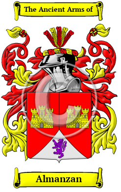 The surname Almanzan was first found in the judicial district of Sahagún, province of León. The surname Almanzan was taken from a village of the same name. Its progenitor was Don Lope Díaz de Cinfontes, who took the name "Almanza" for possessing the Lordship of this village. Don Lope was also the Master Guard of the King and is laid to rest in the Grand Chapel of Sotnobal. Over his sepulcher is written the following epitaph: "Here lies Lope Diaz de Cinfontes, Lord of Almanza; God have mercy on his soul..."