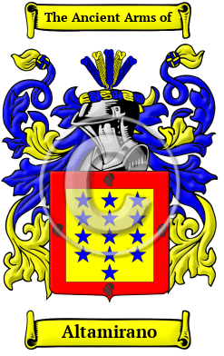 | Altamirano History, Family Crest & Coats of Arms Etymology of AltamiranoWhat does the name Altamirano mean? The distinguished Spanish surname Altamirano is of toponymic origin, that is, it belongs to that category of surnames which derive their origin from the name of the place in which the original bearer of the name was born or resided. In this instance, the surname Altamirano comes directly from Altamiros or Altamira. The place name Altamiro is formed by the combination of two Spanish words, "alta," meaning "high," and "mira," meaning "view," possibly referring to the high view observed from that topographical point. Early Origins of the Altamirano familyThe surname Altamirano was first found in various places located in the Spanish provinces of Vizcaya and Caceres. Early History of the Altamirano familyThis web page shows only a small excerpt of our Altamirano research. Another 85 words (6 lines of text) covering the years 1551, 1590, 1619, 1620, 1625 and 1715 are included under the topic Early Altamirano History in all our PDF Extended History products and printed products wherever possible. Altamirano Spelling VariationsSpelling variations of this family name include: Altamira, Altamiros, Altamyrano and others. Early Notables of the Altamirano family- Don Pedro de Anda Altamirano (c. 1551-1619), a Spanish conquistador, judge, and colonizer of New Spain. As a captain in the Spanish Colonial Army, de Anda helped lead the Spanish conquest of the Baji...