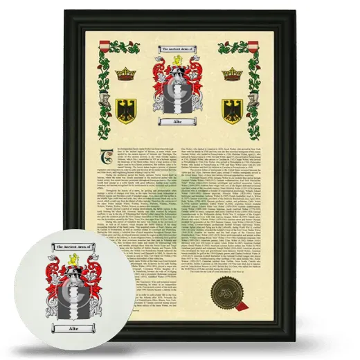 • Our most popular product, the Armorial, in a wooden Black Frame with an 8" Round Mouse Pad