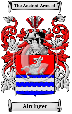 The surname Altringer was first found in Wuerttemberg, where the name came from humble beginnings but gained a significant reputation for its contribution to the emerging mediaeval society. It later became more prominent as many branches of the same house acquired distant estates and branches, some in foreign countries, always elevating their social status by their great contributions to society. The oldest branch of the family may have originated from or lent their name to the village of Aldinger in Wuerttemberg.