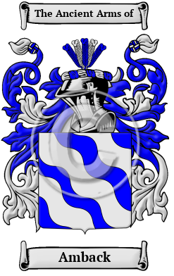 The surname Amback was first found in Brandenburg, where the name was anciently associated with the tribal conflicts of the area. They declared allegiances to many nobles and princes of early history, lending their influence in struggles for power and status within the region. They branched into many houses, and their contributions were sought by many leaders in their search for power.