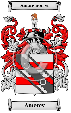 | Amerey History, Family Crest & Coats of Arms Etymology of AmereyWhat does the name Amerey mean? Amerey is one of the names carried to England in the great wave of migration from Normandy following the Norman Conquest in 1066. It is based on the Old French word amauri, which means work-rule or perhaps "valiant and diligent ruler." 1 Early Origins of the Amerey familyThe surname Amerey was first found in Tours in Normandy, where the name was spelt D'Amery, or Amaury the delicate of Pontoisse, and they settled in England after the Norman Conquest in 1066. 2 Consequently, the name was listed as in the Lating form, Haimericus in the Domesday Book. 3 The Hundredorum Rolls of 1273 had only one listing for the family: Roger Ammary in Bedfordshire. 4 "One branch of this ancient house was long seated at Yatt, co. Gloucester; and another has migrated to the United States, where the name and family of Amory are well known and esteemed." 5 Early History of the Amerey familyThis web page shows only a small excerpt of our Amerey research. Another 80 words (6 lines of text) covering the years 1182, 1207, 1221, 1691 and 1788 are included under the topic Early Amerey History in all our PDF Extended History products and printed products wherever possible. Amerey Spelling VariationsSpelling variations in names were a common occurrence in the eras before English spelling was standardized a few hundred years ago. In the Middle Ages, even the literate regularly changed the spellings of their names as the English language incorporated elements of French, Latin, and other European languages. Many variations of the name Amerey have been found, including Amory, Emery, Amery, Ammory, Ammery, Emry and others. Early Notables of the Amerey familyThomas Amory (1691-1788), an English-Irish writer best known for his book "Life of John Buncle," and Amory of Knightshaven. He was the son of Councillor Amory, who accompanied William III to Ireland, was made secretary for the forfeited estates, and possessed a considerable property in... Another 45 words (3 lines of text) are included under the topic Early Amerey Notables in all our PDF Extended History products and printed products wherever possible. Migration of the Amerey family to IrelandSome of the Amerey family moved to Ireland, but this topic is not covered in this excerpt. More information about their life in Ireland is included in all our PDF Extended History products and printed products wherever possible. Migration of the Amerey familyFor many English families, the social climate in England was oppressive and lacked opportunity for change. For such families, the shores of Ireland, Australia, and the New World beckoned. They left their homeland at great expense in ships that were overcrowded and full of disease. Many arrived after the long voyage sick, starving, and without a penny. But even those were greeted with greater opportunity than they could have experienced back home. Numerous English settlers who arrived in the United States and Canada at this time went on to make important contributions to the developing cultures of those countries. Many of those families went on to make significant contributions to the rapidly developing colonies in which they settled. Early North American records indicate many people bearing the name Amerey were among those contributors: Thomas Emry, who was among the first group of immigrants to Jamestown, Virginia in 1607; Rebecca Emry, who settled in Maryland in 1664; Thomas Amory, who migrated to South Carolina and became Advocate General and Speaker of the House of Assembly, Lord Palatine in 1690.