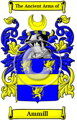 | Ammill History, Family Crest & Coats of Arms Etymology of AmmillWhat does the name Ammill mean? From the historical and enchanting region of Scotland emerged a multitude of noble families, including the distinguished Ammill family. Originally, the Scottish people were known only by a single name. The process by which hereditary surnames were adopted in Scotland is extremely interesting. Surnames evolved during the Middle Ages when people began to assume an extra name to avoid confusion and to further identify themselves. Often they adopted names that were derived from nicknames. Nickname surnames were derived from an eke-name, or added name. They usually reflected the physical characteristics or attributes of the first person that used the name. The name Ammill is a nickname type of surname Anglicized from the Gaelic name O'hAdhmaill, which means active. Early Origins of the Ammill familyThe surname Ammill was first found in Normandy, where Robert, Ranulph, Turstan and Savaric Hamel were recorded in 1180. 1 The Saxon, Aldan Hamel was listed in the source Old English Bynames c. 1055 and later, Gregory Hamel was listed in Yorkshire, England c. 1170. 2 One of the first records of the family in Scotland was "William de Hameville [who] witnessed a confirmation charter of the fishery of Torduf between 1194-1211. As William de Heneuile or de Heyneuile he appears as witness in two Annandale charters by William Bruce, between 1194-1214, and in a resignation by Dunegal, son of Udard within the same period. In the reign of William the Lion, Walter de Hamule settled in Lothian where he obtained lands. He made a grant to the Abbey of Newbattle, Alan Homel perambulated the lands of Rath, c. 1206. Andreas Homyl was bailie of Roxburgh c. 1338, and John Homyl acted as bailie for Sir John Montgomery in 1413. John Homil or Homel was juror in an inquiry respecting right to muir ground at Irvine, 1417. Another John Homyll was appointed Master of the Grammar School of Aberdeen, 1418. Robert de Hommyl had a charter of Roughwood, Ayrshire, and confirmation of previous and older grants to his family in 1452, and Hugh Hanunill of Roughwood went to Ireland with Montgomery of Ards." 3 Early History of the Ammill familyThis web page shows only a small excerpt of our Ammill research. Another 231 words (16 lines of text) covering the years 1143, 1194, 1206, 1214, 1379, 1418, 1482, 1487, 1497, 1514, 1527, 1548, 1550, 1606, 1620, 1648, 1671, 1678 and 1890 are included under the topic Early Ammill History in all our PDF Extended History products and printed products wherever possible. Ammill Spelling VariationsSpelling variations of this family name include: Hamill, Hammill, Hamil, Hommill, Homill, Homil, Hammel, Hammell and many more. Early Notables of the Ammill familyAnother 30 words (2 lines of text) are included under the topic Early Ammill Notables in all our PDF Extended History products and printed products wherever possible. Migration of the Ammill family to IrelandSome of the Ammill family moved to Ireland, but this topic is not covered in this excerpt. Another 91 words (6 lines of text) about their life in Ireland is included in all our PDF Extended History products and printed products wherever possible. Migration of the Ammill familySome of the first settlers of this family name or some of its variants were: Edward, Henry, James, John, Owen, Thomas, William Hamill arrived in Philadelphia between 1800 and 1860; James Hamil settled Charles Town [Charleston], South Carolina in 1772.