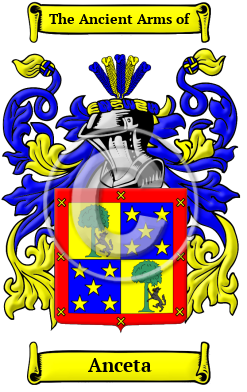 The noble surname Anceta is of Basquelocal origin, deriving from a geographical or man-made feature near which the first bearer lived or held land. In this case, Anceta is derived from the Basque word "antzi," meaning "swamp" and the suffix "-eta" which is a Basque ending denoting plurality. Therefore, the original bearer of the surname Anceta was someone who was identified by the members of his community as "one who lives by the swamps."