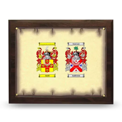 This is perfect for weddings and anniversaries. The walnut wood accents the Coats of Arms perfectly, and is protected by a sheet of acrylic (so you won't deal with shattered glass in shipment), and four brass studs add an antique effect to the product.