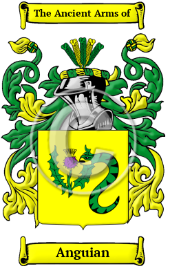 The surname Anguian was first found in the province of Logroño in the northern regions of Spain.