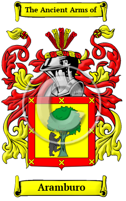 | Aramburo History, Family Crest & Coats of Arms Etymology of AramburoWhat does the name Aramburo mean? The surname Aramburo is of Spanish locative origin, deriving from a geographical or man-made feature near which the first bearer lived or held land. In this instance, the surname Aramburo is composed of the Basque words "aram," deriving from "aran," which signifies "valley," and "bulo, bulu," which signifies "mill." Thus, the initial bearer of the surname Aramburo was someone who was identified by the members of his community as "one who dwells by the mill in the valley." Early Origins of the Aramburo familyThe surname Aramburo was first found in the northern Navarre-Basque region. The earliest references to the surname Aramburo are found in the records of the military Order of Carlos III. Early History of the Aramburo familyThis web page shows only a small excerpt of our Aramburo research. Another 99 words (7 lines of text) are included under the topic Early Aramburo History in all our PDF Extended History products and printed products wherever possible. Aramburo Spelling VariationsSpelling variations of this family name include: Arambula, Aramburu, Arambulo, Aramburo, Arambul and others. Early Notables of the Aramburo familyAnother 38 words (3 lines of text) are included under the topic Early Aramburo Notables in all our PDF Extended History products and printed products wherever possible.