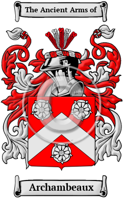 France Etymology of ArchambeauxWhat does the name Archambeaux mean? The Archambeaux surname is derived from a personal name, which derives from the Latin "Arcambaldus". According to etymologists, this personal name is in turn derived from the ancient Germanic elements "Ercan", meaning "precious", and "bald", meaning "bold" and "daring". 1 Early Origins of the Archambeaux familyThe surname Archambeaux was first found in Limousin, situated in the north-western part of the Massif-Central where one can trace the origin of this eminent family settled with lands and seats. During the Middle Ages and the Renaissance some members of the family distinguished themselves through many contributions to the community and province in which they held a family seat, and some were granted certain privileges, land and a place amongst the French nobility. Through the years, some of the members branched to Orleans and south of Paris. Thus the province of Burgundy has been the seat of the eminent family of the Archambault de Beaunes for several centuries. There is evidence of the family later branching northwards, under the name of Archambault, as the name can be found today in the Parisian region as well as in the former province of Orléanais, located around the middle of Loire. This was part of the Royal domain since the 10th century, and which was to be annexed to the French crown in the middle of the 15th century. The noble family of Archimbaud also settled in the province of Provence, located in the South of France. Early History of the Archambeaux familyThis web page shows only a small excerpt of our Archambeaux research. Another 88 words (6 lines of text) covering the years 1242, 1604 and 1688 are included under the topic Early Archambeaux History in all our PDF Extended History products and printed products wherever possible. Archambeaux Spelling VariationsHistory has changed the spelling of most surnames. During the early development of the French language in the Middle Ages, a person gave his version of his name, phonetically, to a scribe, a priest, or a recorder. Some variables were adopted by different branches of the family name. Hence, there spelling variations of the name Archambeaux, some of which include Archambault, Archambaut, Archambeault, Archambeau, Archambeaux, Archambau, Archambaux, Archambot, Archambod, Archambode, Archambold, Archambolde, Archambote, Archambolt, Archambolte, Archambauld, Archambaulde, Archambaud, Archambaude, Archambaute, d'Archambault, d'Archambaut, d'Archambeault and many more. Early Notables of the Archambeaux familyAnother 41 words (3 lines of text) are included under the topic Early Archambeaux Notables in all our PDF Extended History products and printed products wherever possible. Migration of the Archambeaux familyIn 1643, 109 years after the first landings by Cartier, there were only about 300 people in Quebec, in 1663 there were only 500, 2,000 migrants arrived during the next decade. Early marriage was desperately encouraged amongst the immigrants. Youths of 18 took fourteen-year-old girls for their wives. The fur trade was developed and attracted migrants, both noble and commoner from France. 15,000 explorers left Montreal in the late 17th and 18th centuries. Migration from France to New France or Quebec as it was now more popularly called, continued from France until it fell in 1759. By 1675, there were 7000 French in Quebec. By the same year the Acadian presence in Nova Scotia, New Brunswick and Prince Edward Island had reached 500. In 1755, 10,000 French Acadians refused to take an oath of allegiance to England and were deported to Louisiana. Meanwhile, in Quebec, the French race flourished, founding in Lower Canada, one of the two great solitudes which became Canada. Many distinguished contributions have been made by members of this family name Archambeaux. It has been prominent in the arts, religion, politics and culture in France and New France. Amongst the settlers in North America with this distinguished name Archambeaux were Jacques Archambault and his wife Françoise Tourault and their six children, who left from Dompierre sur Mer in 1645-6 for Québec; Laurent Archambault married Catherine Marchand in Montré.