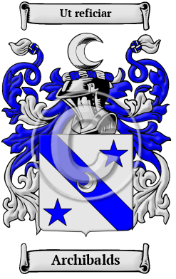 The surname Archibalds was first found in Roxburghshire, about 30 miles southeast of Edinburgh. They had been settled from very ancient times in the Kelso area. Before the name became a surname, there was mention of an "Achebaldus filius Swani de Forgrunde," during the reign of King William, the Lion, of Scotland (1143-1214).