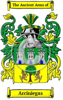 The surname Arciniegas was first found in Galicia, in the northwestern region of the Iberian peninsula.