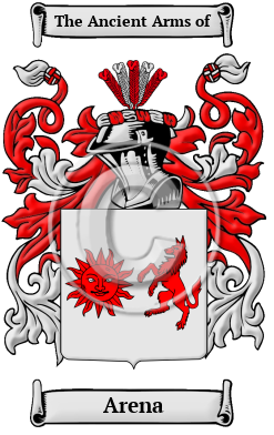 | Arena History, Family Crest & Coats of Arms Early Origins of the Arena familyThe surname Arena was first found in various parts of Southern Italy including early references in Sicily, and the city of Naples. The name eventually moved further north, and those members of the family that lived there adopted the northern tradition of ending their name in "i," whereas those that stayed in the south kept the southern suffixes. The name Arena means "sand" and was probably first given to someone who lived near a beach or sandy area. Early History of the Arena familyThis web page shows only a small excerpt of our Arena research. Another 70 words (5 lines of text) covering the year 1382 is included under the topic Early Arena History in all our PDF Extended History products and printed products wherever possible. Arena Spelling VariationsSpelling variations of this family name include: Arena, Areni, D'Arena, Arenella, Arenello, Areniello, Arenoso and many more. Early Notables of the Arena family- Andrea Arena, Councillor of the Republic in Genoa in 1382