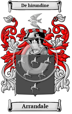 | Arrandale History, Family Crest & Coats of Arms Etymology of ArrandaleWhat does the name Arrandale mean? Arrandale is a name whose history on English soil dates back to the wave of migration that followed the Norman Conquest of England of 1066. The Arrandale family lived in Arundel in the west of the county of Sussex. This place name is thought to be derived from the Old English words, hoar, meaning gray, hune, which described a variety of plant, and dell, meaning valley. 1 Early Origins of the Arrandale familyThe surname Arrandale was first found in the counties of Sussex in southern England, and Somerset, Dorset, and Wiltshire, to the west. The Earls of Arundel came into England in 1066, with the Conqueror, and acquired much land, descended are the Lords Arundel of Wardour. "Linchmere [in Sussex] was held as of the honour of Arundel, by William de Perci, at an early period, and afterwards became the property of the family of Fitzalan." 2 The family name derives from the western branch of Somerset, Dorset, and Wiltshire, where they held about twenty lordships during the taking of the Domesday Book in 1086. "A Norman family, which for centuries has flourished in the West of England, traced by Dugdale to 'Rogerius Arundel,' mentioned in Domesday." 3 "According to Domesday Book, Roger de Arundel was found to be possessed of twenty-eight lordships in Somerset, 20 William the Conqueror, and he no doubt was the Norman whose name appears on the roll [of Battel Abbey]. " 4 St. Michael in Cornwall was an early homestead of the family. "The ancient name of this place was Modeshole, under which appellation John de Arundell, in 1301, certified his right to a market and fair here, which had been previously granted to Walter de Raleigh." 2 "The Arundells are amongst the few Cornish families of Norman origin, and there are still fewer of French extraction who have for so long a period as at least five or six centuries been, like them, traceable in that county. 'The Great Arundells' as they were styled - appear to have settled in Cornwall, about the middle of the thirteenth century, at the place so called (now the site of a nunnery.)" 5 And another branch of the family was found in Lifton, Devon since early times. "The manor and lordship were, by grant of Edward VI., vested in the ancestors of W. A. H. Arundell, Esq., the present proprietor." 2 "Another manor called Tregarne Condurra, which is partly in this parish, and partly in St. Keverne, St. Martin's, Manaccan, Budock, and Mawgan, formerly belonged to the Earls of Cornwall. From these it became the property of the Arundells of Lanherne, in which family it continued until the year 1737." 6 Early History of the Arrandale familyThis web page shows only a small excerpt of our Arrandale research. Another 125 words (9 lines of text) covering the years 1315, 1353, 1373, 1376, 1386, 1388, 1389, 1391, 1396, 1397, 1398, 1399, 1405, 1407, 1410, 1414, 1418, 1495, 1504, 1522, 1549, 1555, 1558, 1561, 1576, 1580, 1607, 1613, 1616, 1636, 1640, 1641, 1656, 1660, 1687, 1694 and 1701 are included under the topic Early Arrandale History in all our PDF Extended History products and printed products wherever possible. Arrandale Spelling VariationsAnglo-Norman names are characterized by a multitude of spelling variations. When the Normans became the ruling people of England in the 11th century, they introduced a new language into a society where the main languages of Old and later Middle English had no definite spelling rules. These languages were more often spoken than written, so they blended freely with one another. Contributing to this mixing of tongues was the fact that medieval scribes spelled words according to sound, ensuring that a person's name would appear differently in nearly every document in which it was recorded. The name has been spelled Arrundell, Arundell, Arundel, Arundelle, Aringale, Arringale, Arrundale, Arrindell, Arindale, Arungale, Erringdale, Erundell and many more. Early Notables of the Arrandale familyThomas Arundel (1353-1414), Archbishop of Canterbury in 1397 and from 1399 until his death, an outspoken opponent of the Lollards, Bishop of Ely (1373), elevated to the position of Archbishop of York (1388), served twice as Lord Chancellor (1386-1389) and (1391-1396), in 1396 he was made Archbishop of Canterbury, within a year, he was exiled by the king, he spent it in Florence, where at Richard II's request, the Roman Pope Boniface IX translated him to become Bishop of St. Andrews (1398), which was an empty fate because Scotland realized it already had a bishop, shortly afterwards, joined up with Henry... Another 194 words (14 lines of text) are included under the topic Early Arrandale Notables in all our PDF Extended History products and printed products wherever possible. Migration of the Arrandale family to IrelandSome of the Arrandale family moved to Ireland, but this topic is not covered in this excerpt. Another 63 words (4 lines of text) about their life in Ireland is included in all our PDF Extended History products and printed products wherever possible. Migration of the Arrandale familyFor many English families, the political and religious disarray that plagued their homeland made the frontiers of the New World an attractive prospect. Thousands migrated, aboard cramped disease-ridden ships. They arrived sick, poor, and hungry, but were welcomed in many cases with far greater opportunity than at home in England. Many of these hardy settlers went on to make important contributions to the emerging nations in which they landed. Among early immigrants bearing the name Arrandale or a variant listed above were: James Arundel who settled in Virginia in 1637; John in 1652; Peter in 1626; Richard in 1650; all settled in Virginia. Robert settled in Barbados in 1670.