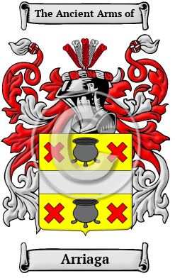 | Arriaga History, Family Crest & Coats of Arms Etymology of ArriagaWhat does the name Arriaga mean? The distinguished surname Arriaga originates in Basque region of Spain. It was a topographic name for someone who lived on a patch of stony soil, derived from the element "harri" or "arri", which mean "stone," plus the locative suffix "-aga", denoting "place of", collectively meaning "someone from a stony place". Early Origins of the Arriaga familyThe surname Arriaga was first found in the Basque country of Spain, as one of the oldest names with a manor house in Alza next to S. Sebastiao da Biscay, in the province of Guipuzcoa. A member of this lineage, Salvador de Arriaga, took part in the battle of the Navas de Tolosa, wounded in 1212, being among the five hundred children who fought in it. From this early beginning, the family branched to Ustaroz (Roncal), Bera de Bidasoa (Navarre), Viscaya and Alava. Arriaga was located in the municipality of Vitoria-Gasteiz, province of Álava, Basque Country and was first reference in 1025. The Brotherhood of Arriaga, as it came to be known, existed until its dissolution in 1332. Arriaga is now part of the neighborhood of Lakua-Arriaga. They descend from an ancient house known since the time of Garcia IV Sancho the Noble, king of Navarre from 1035 to 1054. Its members founded a house in Tafalla and several became barons (ricohombres) in Aragon, at the time of King James I the Conqueror in the 13th century. Some of the family moved to Portugal where they were established in Alvalade and Coracao de Jesus (Lisbon) and one of whose contemporary descendant lines is represented by Don Manuel de Arriaga Brito, a resident of Lisbon (Portugal). Early History of the Arriaga familyThis web page shows only a small excerpt of our Arriaga research. Another 63 words (4 lines of text) covering the years 1164, 1169, 1564, 1585, 1592, 1606, 1612, 1615, 1622, 1667, 1800, 1858 and 1885 are included under the topic Early Arriaga History in all our PDF Extended History products and printed products wherever possible. Arriaga Spelling VariationsSpelling variations of this family name include: Arriaga, Ariaga, de Arrigo, de Arriaga and others. Early Notables of the Arriaga family- include Pablo José Arriaga, SJ (1564-1622), a Spanish Jesuit missionary in South America. He was ordained in Peru in 1585. He later became Rector of the College of Arequipa, (1612-1615)