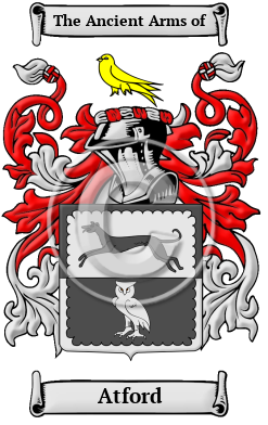 | Atford History, Family Crest & Coats of Arms Etymology of AtfordWhat does the name Atford mean? The Anglo-Saxon name Atford comes from when its first bearer worked as a keeper of the ford or river crossing. 1 Early Origins of the Atford familyThe surname Atford was first found in the Domesday Book of 1086 where Bruma de la forda was listed at Winton, Hampshire. 2 Years later in Somerset, Eadric æt Fordan was listed as an Old English Byname, 1100-1130. The Hundredorum Rolls of 1273 included Reginald de la Forthe in Suffolk and later, Geoffrey atte Forde was found in Sussex in 1296. 3 The Hundredorum Rolls also included: Richard de la Forde, Norfolk; and William de la Forde, Kent. 4 In Somerset, David atte Forde was registered there 1 Edward III (during the first year of the reign of King Edward III.) 5 The name is "characteristic of the southern and western counties. Absent or singularly rare north of a line drawn from the Wash to the Mersey. It is at present most numerous in Devon, Dorset, Gloucestershire, Hants, and Cheshire. In almost all the counties where this name is at all frequent we find it in one form or another as a place - name." 6 Early History of the Atford familyThis web page shows only a small excerpt of our Atford research. Another 116 words (8 lines of text) covering the years 1559, 1586, 1594, 1598, 1615, 1616, 1619, 1640, 1642, 1660, 1662, 1664, 1669, 1674, 1684, 1699, 1804, 1826, 1846, 1847, 1863, 1890, 1905 and 1947 are included under the topic Early Atford History in all our PDF Extended History products and printed products wherever possible. Atford Spelling VariationsUntil quite recently, the English language has lacked a definite system of spelling rules. Consequently, Anglo-Saxon surnames are characterized by a multitude of spelling variations. Changes in Anglo-Saxon names were influenced by the evolution of the English language, as it incorporated elements of French, Latin, and other languages. Although Medieval scribes and church officials recorded names as they sounded, so it is common to find one person referred to by several different spellings of his surname, even the most literate people varied the spelling of their own names. Variations of the name Atford include Forde, Ford, Alford and others. Early Notables of the Atford familyWilliam Ford or Foord (c.1559-1616?), Church of England clergyman, he may have been the same William Ford who became Rector of Thurleigh, Bedfordshire in 1594 or the William Ford who became Vicar of Bristow, Herefordshire in 1615; Thomas Ford (1598-1674), an English nonconformist minister, member of the Westminster Assembly and... Another 49 words (4 lines of text) are included under the topic Early Atford Notables in all our PDF Extended History products and printed products wherever possible. Migration of the Atford family to IrelandSome of the Atford family moved to Ireland, but this topic is not covered in this excerpt. Another 126 words (9 lines of text) about their life in Ireland is included in all our PDF Extended History products and printed products wherever possible. Migration of the Atford familySearching for a better life, many English families migrated to British colonies. Unfortunately, the majority of them traveled under extremely harsh conditions: overcrowding on the ships caused the majority of the immigrants to arrive diseased, famished, and destitute from the long journey across the ocean. For those families that arrived safely, modest prosperity was attainable, and many went on to make invaluable contributions to the development of the cultures of the new colonies. Research into the origins of individual families in North America revealed records of the immigration of a number of people bearing the name Atford or a variant listed above: Charles Ford who settled in Virginia in 1635; John Ford settled in Salem Massachusetts in 1630; Edward, Frederick, Hugh, James, John, Michael, Patrick, Phillip, Richard, Thomas and William Ford all arrived in Philadelphia between 1840 and 1865..