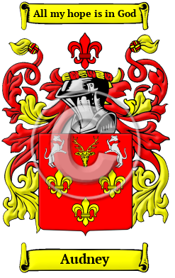 The surname Audney was first found in Aberdeenshire (Gaelic: Siorrachd Obar Dheathain), a historic county, and present day Council Area of Aberdeen, located in the Grampian region of northeastern Scotland, where they held a family seat from very ancient times, in the barony and parish of Udney.