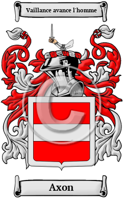 | Axon History, Family Crest & Coats of Arms Etymology of AxonWhat does the name Axon mean? The ancient roots of the Axon family name are in the Anglo-Saxon culture. The name Axon comes from when the family lived in the settlement of Axton, in the county of Kent. Early Origins of the Axon familyThe surname Axon was first found in Cheshire, Shropshire, and Worcestershire. Sometime before the Norman Conquest in 1066 they held a family seat at Ombersley in their mansion Castle known as Acton Hall, in Worcestershire. "Engelard de Acton, of Acton-Pigot and Acton-Burnell, was admitted on the Roll of Guild Merchants of Shrewsbury in 1209. His descendant Edward de Acton, of Aldenham, married the coheiress of L'Strange, living in 1387, and with her acquired an estate in Longnor, in the county. [Shropshire]" 1 Aughton in Lancashire was an ancient family seat. " 'Achetun' was held before the Conquest by Uctred, the Saxon proprietor of Dalton and Skelmersdale; the manor, or parts of it, subsequently came to the families of Acton or Aughton." 2 The parish of Acton-Round in Shropshire was another ancient family seat. "The church is a neat edifice, the walls of which are ornamented with monuments to the memory of the Actons, by one of whom, Sir Richard, the chancel was built in 1761." 2 Another early listing of the name was John Acton (died 1350), an English canon lawyer known for his commentary on the ecclesiastical Constitutions of two papal legates: Cardinal Otto; and Ottobone. Early History of the Axon familyThis web page shows only a small excerpt of our Axon research. Another 95 words (7 lines of text) covering the years 1305, 1597, 1600, 1621, 1650, 1659, 1660, 1662, 1665, 1677, 1684, 1685, 1689, 1705, 1716, 1721, 1727, 1728, 1730 and 1731 are included under the topic Early Axon History in all our PDF Extended History products and printed products wherever possible. Axon Spelling VariationsOne relatively recent invention that did much to standardize English spelling was the printing press. However, before its invention even the most literate people recorded their names according to sound rather than spelling. The spelling variations under which the name Axon has appeared include Acton, Ackton, Akton and others. Early Notables of the Axon familySir John de Acton, High Sheriff of Herefordshire in 1305; John Acton, MP for Droitwich in 1597; Sir Edward Acton, 1st Baronet (1600-1659), English politician, High Sheriff of Shropshire, a Royalist in the English Civil War; Sir Walter Acton, 2nd Baronet (c 1621-1665), an English landowner and politician who sat in the House of Commons in 1660; Sir Edward Acton, 3rd Baronet (c. 1650-1716), English politician, Tory Member of Parliament... Another 69 words (5 lines of text) are included under the topic Early Axon Notables in all our PDF Extended History products and printed products wherever possible. Migration of the Axon family to IrelandSome of the Axon family moved to Ireland, but this topic is not covered in this excerpt. More information about their life in Ireland is included in all our PDF Extended History products and printed products wherever possible.