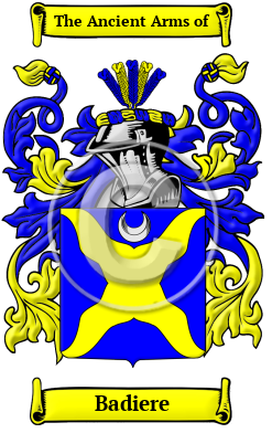 France Etymology of BadiereWhat does the name Badiere mean? Of all the French names to come from that northwestern peninsula of France known as Brittany, Badiere is one of the most ancient. The name is a result of the original family having lived in Brittany, where this ancient family was well established in the Middle Ages. Early Origins of the Badiere familyThe surname Badiere was first found in Brittany, where this ancient family was well established in the Middle Ages. Early History of the Badiere familyThis web page shows only a small excerpt of our Badiere research. Another 141 words (10 lines of text) covering the years 1481, 1489, 1645 and 1789 are included under the topic Early Badiere History in all our PDF Extended History products and printed products wherever possible. Badiere Spelling VariationsOne can encounter great variation in the spelling of French surnames; in part, as spelling, and the spelling names was not yet standardized during the early development of the written French language. Later, there was much branching and movement of families, and spellings would change according to region. Variations of the name Badiere include Badier, Badière, Badaire, Bad and others. Early Notables of the Badiere familyMore information is included under the topic Early Badiere Notables in all our PDF Extended History products and printed products wherever possible.