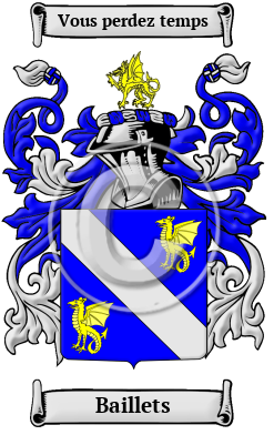 France Early Origins of the Baillets familyThe surname Baillets was first found in Burgundy (French: Bourgogne), an administrative and historical region of east-central France, where this esteemed family has been traced from ancient times. Early History of the Baillets familyThis web page shows only a small excerpt of our Baillets research. Another 200 words (14 lines of text) covering the years 1412, 1486, 1551, 1554, 1585, 1632, 1633, 1649, 1653, 1706, 1710, 1780, 1783, 1821, 1825, 1831, 1833 and 1842 are included under the topic Early Baillets History in all our PDF Extended History products and printed products wherever possible. Baillets Spelling VariationsSpelling variations of this family name include: Baillet, Baillais, Baillay, Bailet, Bailais, Bailay, Baillets, Bailets, Baillays, Bailays, Baillait, Baillaits, Bailait, Bailaits, Bayllet, Bayllets, Bayets, du Baillet, de Baillet, Baillaud, Baillette and many more. Early Notables of the Baillets familyAdrien Baillet (1649-1706), a French scholar and critic, best known as a biographer of René Descartes; Philippe Baillet, Councillor of the Grand Council, President of the Chamber of Requests of the Palace of Dijon, Knight of Saint-Michel, Captain, Governor of Saint-Jean-de-Losne.