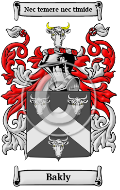 | Bakly History, Family Crest & Coats of Arms Etymology of BaklyWhat does the name Bakly mean? The ancestors of the name Bakly date back to the days of the Anglo-Saxon tribes of Britain. The name is derived from their residence in any of the places named Buckley, or Buckleigh, in England. Bakly is a local surname, which belongs to the category of hereditary surnames. The name may derive from the Old English "bok lee," meaning meadow, or field. The likely meaning of the name was "clearing in a beech wood" (with boc meaning beech tree and ley meaning wood, glade or clearing). The name could also have been construed from "bucc" meaning a buck or deer; or from the Welsh "bwlch y clai," meaning clay hole. 1 Early Origins of the Bakly familyThe surname Bakly was first found in Cheshire where Buckley was an Anglo-Saxon local, with some of its houses later recorded in the Domesday Book. The first documented evidence of its existence dates from 1294 when it was described as the pasturage of the Manor of Ewloe, spelled as "Bokkeley". 2 Alternatively, the original spelling of the name was Bulclough, meaning "large mountains," and related specifically to a chain of mountains in central Cheshire in England. Whichever derivation, you choose, all point to Cheshire. "The Buckleys of Cheshire have been for probably 200 years in the parish of Mottram-in-Longdendale. The name is at present best represented on and near the Lancashire border in the vicinity of Manchester, but it is also established in the counties of Derby, Lancashire, Stafford, Worcester, and in the West Riding." 3 Early English rolls provide us a glimpse of the spelling variations used through Medieval times. Today we typically need to look beyond the spellings of these entries and concentrate on on a phonetic appreciation of the entries. The Hundredorum Rolls of 1273 include: David de Buckelay, Yorkshire; and Michael de Bokele, Suffolk. The Lay Subsidy Rolls include an entry for Christian de Bukkelegh, Lancashire, 1332. 4 Early History of the Bakly familyThis web page shows only a small excerpt of our Bakly research. Another 165 words (12 lines of text) covering the years 1517, 1524, 1537, 1547, 1568, 1570, 1571, 1572, 1583, 1584, 1593, 1610, 1635, 1641, 1650, 1659, 1698 and 1702 are included under the topic Early Bakly History in all our PDF Extended History products and printed products wherever possible. Bakly Spelling VariationsBakly has been spelled many different ways. Before English spelling became standardized over the last few hundred years, spelling variations in names were a common occurrence. As the English language changed in the Middle Ages, absorbing pieces of Latin and French, as well as other languages, the spelling of people's names also changed considerably, even over a single lifetime. Many variations of the name Bakly have been found, including Buckley, Bucklie, Buckly, Bulkely, Bulkley, Bulkelly, Boukley, Bulkaly, Bulkly, Bulklay and many more. Early Notables of the Bakly familyWilliam Buckley (d. 1570?), an English mathematician, a native of Lichfield, educated at Eton, whence he was elected to a scholarship at King's College, Cambridge, in 1537.