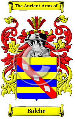 The surname Balche was first found in Poitou, a part of Aquitane, where the family has been a prominent family for centuries, and held a family seat with lands and manor. The family were well established in the region of the Vienne and several members of the family distinguished themselves through their contributions toward the community in which they lived and were rewarded with lands, titles and letters patent confirming their nobility.
