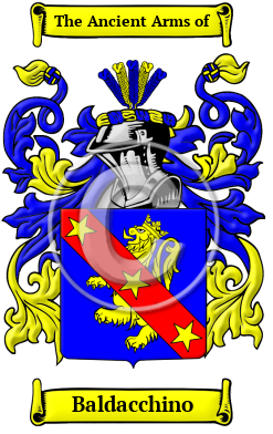 | Baldacchino History, Family Crest & Coats of Arms Etymology of BaldacchinoWhat does the name Baldacchino mean? The distinguished surname Baldacchino can be traced back to the ancient and beautiful region of Lombardy. Although people were originally known only by a single name, it became necessary for people to adopt a second name to identify themselves as populations grew and travel became more frequent. The process of adopting fixed hereditary surnames was not complete until the modern era, but the use of hereditary family names in Italy began in the 10th and 11th centuries. Italian hereditary surnames were developed according to fairly general principles and they were characterized by a profusion of derivatives coined from given names. The most common type of family name found in the region of Lombardy is the patronymic surname, which is derived from the father's given name. During the Middle Ages, Italians adopted the patronymic system of name-making because it perfectly complemented the prevailing Feudal System. In Italy the popularity of patronymic type of surname is also due to the fact that during the Christian era, people often named their children after saints and biblical figures. The surname Baldacchino came from the Germanic word baltha, which means gallant, bold. Early Origins of the Baldacchino familyThe surname Baldacchino was first found in the city of Cremona, which lies just south of Milan. The earliest records of the family lie here with the Baldesio family in the 8th century. Early History of the Baldacchino familyThis web page shows only a small excerpt of our Baldacchino research. The years 1160, 1281, 1296, 1298, 1343, 1507, 1550, 1553, 1579, 1585, 1624, 1650, 1683, 1695 and 1703 are included under the topic Early Baldacchino History in all our PDF Extended History products and printed products wherever possible. Baldacchino Spelling VariationsEnormous variation in spelling and form characterizes those Italian names that originated in the medieval era. This is caused by two main factors: regional tradition, and inaccuracies in the recording process. Before the last few hundred years, scribes spelled names according to their sounds. Spelling variations were the unsurprising result. The variations of Baldacchino include Baldo, Baldi, Baudi, Baudo, Bauda, De Baudi, Debaudi, Baldelli, Baldella, Baldetti, Balde, Baldini, Baldin, Baldinotti, Balducci, Baldocci, Baldoni, Baldizzone, Baldacchi, Baldaco, Baldacchino, Baldecchi, Baldacci, Baldassi, Baldasso, Baldas, Baldassini, Baldasseroni, Baldassarini, Baldana, BaldaChina, Baldassin, Baldazzi, Baldani, Baldan, Baldaro, Baldari, Baldesi, Baldrati, Baldironi, Baudino, Baudinelli, Bauduccio, Baudone, Baudizzone, Baudacci, Baudassi, Baudasso and many more. Early Notables of the Baldacchino familyRinaldo Baldacchini in Cortona in 1160, who owned much land and many castles; his son Filippo d' Antonio Baldacchini was a count in a Papal castle; Cino Baldi of Novara was a famous religious man in 1296 and Lapo Baldi took his position and status in 1298; Percivalle Baldissone was ambassador to Pope Martino IV in 1281 in Genoa. A soldier of the Baldacchino lineage at this time was Pace Baldassino, who lived in Gubbio in 950. Also from this family in Gubbio was Baldoino Baldassini who was a count, San Ubaldo Baldassini was bishop of Bubbio, and a branch of... Another 180 words (13 lines of text) are included under the topic Early Baldacchino Notables in all our PDF Extended History products and printed products wherever possible. Baldacchino RankingFrance, the name Baldacchino is the 8,856th most popular surname with an estimated 500 - 1,000 people with that name. 1