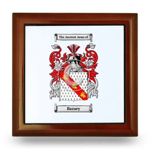 Made from the finest mahogany, this box has a brilliant lacquered cherry finish. Inside, you'll find cream-colored velvet. The hinged lid makes opening and closing this jewelry box easy. The Coat of Arms is heat-pressed onto a ceramic tile on the top of the box.
