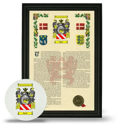 • Our most popular product, the Armorial, in a wooden Black Frame with an 8" Round Mouse Pad