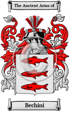 The surname Bechini was first found in Austria, where this family was a prominent contributor to the development of the district from ancient times. Always prominent in social affairs, the name Bechinie became an integral part of that turbulent region as it forged alliances with other families within the region and the nation.