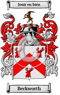 England Etymology of BeckworthWhat does the name Beckworth mean? In ancient Anglo-Saxon England, the ancestors of the Beckworth surname lived at Beckwith in the Yorkshire parish of Pannal, and it is from this location that the name Beckworth is derived. The distinguished name Beckworth is derived from the Old English word bece, which means beech, and the Old Norse word vior, which means wood. Thus the surname Beckworth indicates the proximity of the town to a grove of beech trees. 1 The name of Beckwith is said to have been changed from Malbie in the 12th century. 2 Early Origins of the Beckworth familyThe surname Beckworth was first found in Yorkshire, where "most of the armigerous families of the name spring from, and Beckwith, a hamlet in the parish of Pannal, in that county, is probably the cradle of the race. " 2 The Yorkshire Poll Tax Rolls of 1379 include: Willelmus Bekwyt; Willelmus de Bekwyth; and Johannes de Bekwyth. 3 Later records show Richard Bekwyth in 1415 and Adam Bekwith who was a Freeman of York in 1423. 4 "Amongst the old West Riding [of Yorkshire] names, now less frequently represented, is that of Beckwith, which was originally derived from a hamlet in that division of the county. The Beckwiths were a very numerous race, the main stock being settled at a very early period at Clint in Ripley, where it flourished until the close of the 16th century; the Beckwiths of Aldborough during the 17th and 18th centuries, who belonged to the Clint stock, received a baronetcy." 5 This hamlet in the parish of Pannall, near Harrogate saw an exodus like many places in England in the 17th century. Many settled in Boston including "Robert Beckwith, went out in 1635 in the Transport, bound for Virginia." 6 Early History of the Beckworth familyThis web page shows only a small excerpt of our Beckworth research. Another 58 words (4 lines of text) covering the years 1759, 1780, 1788, 1794, 1808, 1809, 1819 and 1828 are included under the topic Early Beckworth History in all our PDF Extended History products and printed products wherever possible. Beckworth Spelling VariationsIt is only in the last few hundred years that the English language has been standardized. For that reason, early Anglo-Saxon surnames like Beckworth are characterized by many spelling variations. As the English language changed and incorporated elements of other European languages, even literate people changed the spelling of their names. The variations of the name Beckworth include: Beckwith, Beckworth, Beckworthe and others. Early Notables of the Beckworth familyJohn Christmas Beckwith, born Dec. 25, 1759, who studied music under Dr. Philip Hayes and Dr. William Hayes. He was appointed organist of St. Peter Mancroft's, Norwich, on Jan. 16, 1794 and succeeded Garland as organist of the cathedral in 1808. He never wrote or gave his Christian name officially otherwise than 'John,' and it is believed that the name 'Christmas' was merely a playful addition made by his friends by reason of his having been born on Christmas Day... Another 80 words (6 lines of text) are included under the topic Early Beckworth Notables in all our PDF Extended History products and printed products wherever possible.