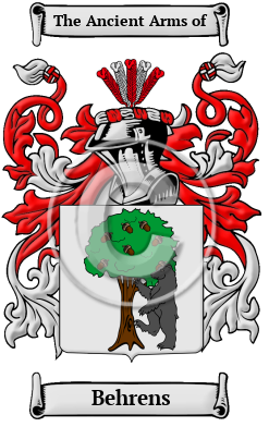 Germany Early Origins of the Behrens familyThe surname Behrens was first found in Saxony, where the name Behrent was closely identified in early mediaeval times with the feudal society which would become prominent throughout European history. The name would later emerge as a noble family with great influence, having many distinguished branches, and become noted for its involvement in social, economic and political affairs. Early History of the Behrens familyThis web page shows only a small excerpt of our Behrens research. Another 71 words (5 lines of text) covering the years 1630, 1714 and 1792 are included under the topic Early Behrens History in all our PDF Extended History products and printed products wherever possible. Behrens Spelling VariationsSpelling variations of this family name include: Behrend, Behrent, Behrente, Behrentes, Behren, Behrens, Behrend, Behrends, Behrens, Berent, Berend, Berends and many more. Early Notables of the Behrens familyAnother 47 words (3 lines of text) are included under the topic Early Behrens Notables in all our PDF Extended History products and printed products wherever possible. Behrens Rankingthe United States, the name Behrens is the 2,942nd most popular surname with an estimated 9,948 people with that name. 1