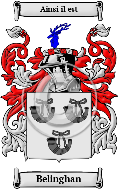 | Belinghan History, Family Crest & Coats of Arms Etymology of BelinghanWhat does the name Belinghan mean? The earliest origins of the name Belinghan are with the Viking settlers of the early Middle Ages; the surname having come from a place named by the Vikings It is a name for someone who lived in the manor of Bellingham in Northumberland, where the family held this estate since the early Middle Ages. By trade, the family was traditionally foresters, and principally cared for the forest of Tynedale, "for tyme beyond memory". The name literally means "homestead of the dwellers at the bell-shaped hill" and is derived from the Old English words Bell+ ing + ham. 1 Early Origins of the Belinghan familyThe surname Belinghan was first found in Bellingham, Northumberland, England where Alan of Bellingham was Lord of the manor shortly after the Norman Conquest in 1066. 2 Early records show that there were perpetual feuds between Alan de Bellingham and the Charltons of Hasleyside. It seems that the Charletons were the victor as while they have a mansion near the town, the Bellinghams have pretty much disappeared from the county. Henry Bellingham of Bellingham was made Knight Banneret by King Henry VI after the battle of Wakefield. Richard Billingham or Bullingham (fl. 1350), was a schoolman, "whose name appears on the rolls of Merton College, Oxford, between 1344 and 1350, is mentioned by Wood (Antiquities of Oxford, i. 447 seqq.) as having been concerned in a riot arising about an election to the chancellorship of the University in 1349. " 3 Billingham Manor (or Billingham House) is a manor house in Chillerton, on the Isle of Wight that dates back to 1631. Early History of the Belinghan familyThis web page shows only a small excerpt of our Belinghan research. Another 162 words (12 lines of text) covering the years 1296, 1506, 1511, 1512, 1528, 1530, 1545, 1548, 1549, 1560, 1571, 1576, 1592, 1597, 1598, 1605, 1625, 1633, 1634, 1641, 1672, 1769, 1812, 1950 and 1958 are included under the topic Early Belinghan History in all our PDF Extended History products and printed products wherever possible. Belinghan Spelling VariationsMedieval scribes most often spelled names by the way they sounded. spelling variations, are thus, very common in records dating from that time. Over the years, Belinghan has been spelled Bellingham, Bellinghame, Belingham, Belinghame, Billingham and many more. Early Notables of the Belinghan familyRichard Bellingham (1592?-1672), an English colonial magistrate, lawyer, and several-time Governor of the Massachusetts Bay Colony. "He was educated for the law, and from 1625 to 8 Nov. 1633 was recorder of Boston, Lincolnshire. In 1634 he emigrated, along with his wife, to Massachusetts, and in the following year he was elected deputy governor of the colony. By a majority of six votes over John Winthrop he was, in 1641, elected governor. " 3