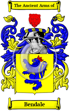 England Etymology of BendaleWhat does the name Bendale mean? The name Bendale first arose amongst the Anglo-Saxon tribes of Britain. It is derived from their having lived in the county of Salop (Shropshire), where the Bendale family took their name from the parish of Benthall, near Much Wenlock. References to the family name in this area date back to the 12th century. Benthall Hall is a 16th century English country house is located there, a few miles from the historic Ironbridge Gorge. The Hall was built around 1580, on the site of an earlier 12th century medieval manor and manor house. It proudly retains much of its fine oak interior, and an elaborate 17th century staircase. Moreover, it is still occupied by the Benthall family, but has been owned by the National Trust since 1958. Alternatively, the name could have been derived from Benthall, a village in Northumberland about 6 kilometers south east of Bamburgh. 1 Early Origins of the Bendale familyThe surname Bendale was first found in Shropshire where Robert de Benethal was listed in the Assize Rolls for 1221. Later, again in Shropshire, Philip de Benedhal was listed in the Hundredorum Rolls of 1255. 2 "The Bendalls may derive their name from the Suffolk parish of Benhall. De Benedhal was a Shropshire name in the 13th century. The Bentalls are numerous in the Chelmsford district of Essex. Benhall is the name of a parish in Suffolk." 3 Early History of the Bendale familyThis web page shows only a small excerpt of our Bendale research. Another 51 words (4 lines of text) covering the year 1221 is included under the topic Early Bendale History in all our PDF Extended History products and printed products wherever possible. Bendale Spelling VariationsOne relatively recent invention that did much to standardize English spelling was the printing press. However, before its invention even the most literate people recorded their names according to sound rather than spelling. The spelling variations under which the name Bendale has appeared include Bendall, Bendell, Bendal, Bendel, Bendle, Bentall, Benthall and many more. Early Notables of the Bendale familyMore information is included under the topic Early Bendale Notables in all our PDF Extended History products and printed products wherever possible. Migration of the Bendale familyAt this time, the shores of the New World beckoned many English families that felt that the social climate in England was oppressive and lacked opportunity for change. Thousands left England at great expense in ships that were overcrowded and full of disease. A great portion of these settlers never survived the journey and even a greater number arrived sick, starving, and without a penny. The survivors, however, were often greeted with greater opportunity than they could have experienced back home. These English settlers made significant contributions to those colonies that would eventually become the United States and Canada. An examination of early immigration records and passenger ship lists revealed that people bearing the name Bendale arrived in North America very early: Paul Bendle who settled in Torbay, Newfoundland before 1754; Josiah Bendal, who settled in Maryland in 1775; James Bendall settled in Virginia in 1663.