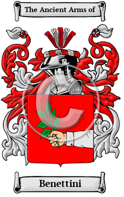 | Benettini History, Family Crest & Coats of Arms Etymology of BenettiniWhat does the name Benettini mean? The distinguished surname Benettini originated in an area of Italy, known as the Papal States. Although people were originally known only by a single name, it became necessary for people to adapt a second name to identify themselves as populations grew and travel became more frequent. The process of adopting fixed hereditary surnames was not complete until the modern era, but the use of hereditary family names in Italy began in the 10th and 11th centuries. Italian hereditary surnames were developed according to fairly general principles and they are characterized by a profusion of derivatives coined from given names. The most traditional type of family name found in the region of the Papal States is the patronymic surname, which is derived from the father's given name. During the Middle Ages, Italians adopted the patronymic system of name-making because it perfectly complemented the prevailing Feudal System. In Italy the popularity of patronymic type of surname is also due to the fact that during the Christian era, people often named their children after saints and biblical figures. The surname Benettini came from the first name "Benito," which is the Italian form of Benedict, which means blessed. Early Origins of the Benettini familyThe surname Benettini was first found in Ferrara, a city and comune in Emilia-Romagna, northern Italy, capital city of the Province of Ferrara. History dates the city back to 753. It was at war with Venice in 1471. It is a walled city and notable is the Church of S. Cristoforo. Knitted goods and shawls are made. In those ancient times only persons of rank, the podesta, clergy, city officials, army officers, artists, landowners were entered into the records. To be recorded at this time was in itself a family honor. Early History of the Benettini familyThis web page shows only a small excerpt of our Benettini research. Another 99 words (7 lines of text) covering the years 1258, 1405, 1414, 1530, 1590, 1720 and 1819 are included under the topic Early Benettini History in all our PDF Extended History products and printed products wherever possible. Benettini Spelling VariationsSpelling variations of this family name include: Benzi, Benzo, Benza, Bensi, Penzo, Penza, Pensi, Penso, Benzizni, Benzani, Benzan and many more. Early Notables of the Benettini familyGiovanni Battista Benedetti (1530-1590), an Italian mathematician and physicist, considered one of the forerunners of Galileo.