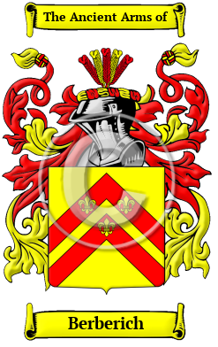 England Etymology of BerberichWhat does the name Berberich mean? The name Berberich has a rich and ancient history. It is an Anglo-Saxon name that was originally derived from a baptismal name meaning son of Barbara. 1 In some instances, the name may have also been a nickname for someone, such as a Moor or Berber, who appeared to be of North African heritage. In such a case the name is a reference to the Barbary Coast of North Africa. Another source notes that the name may be Norman in origin as he notes that "Barberi, famous of Old Forits Abbey (1170), is a parish near Falaise, in Normandy." 2 Early Origins of the Berberich familyThe surname Berberich was first found in London, where the BarBerry spelling was the most popular. Late marriage records show: William Grosse and Barbery Marbeck were married at St. Antholin (London) in 1581. (Note the use as a forename) Helline, daughter of Henrie Barbery, was buried at St. James, Clerkenwell in 1609. Barbery, daughter of Jeremiah and Barbery Bird married at St. Mary Aldermary in 1696 and Francis Lee and Catherine BarBerry were married at St. James, Clerkenwell in 1715. 1 Early History of the Berberich familyThis web page shows only a small excerpt of our Berberich research. Another 203 words (14 lines of text) covering the years 1327, 1500, 1609, 1674, 1692 and 1715 are included under the topic Early Berberich History in all our PDF Extended History products and printed products wherever possible. Berberich Spelling VariationsBefore English spelling was standardized a few hundred years ago, spelling variations of names were a common occurrence. Elements of Latin, French and other languages became incorporated into English through the Middle Ages, and name spellings changed even among the literate. The variations of the surname Berberich include BarBerry, Barbary, Barbery, Barberrie, Baberie, Berberry and many more. Early Notables of the Berberich familyMore information is included under the topic Early Berberich Notables in all our PDF Extended History products and printed products wherever possible.
