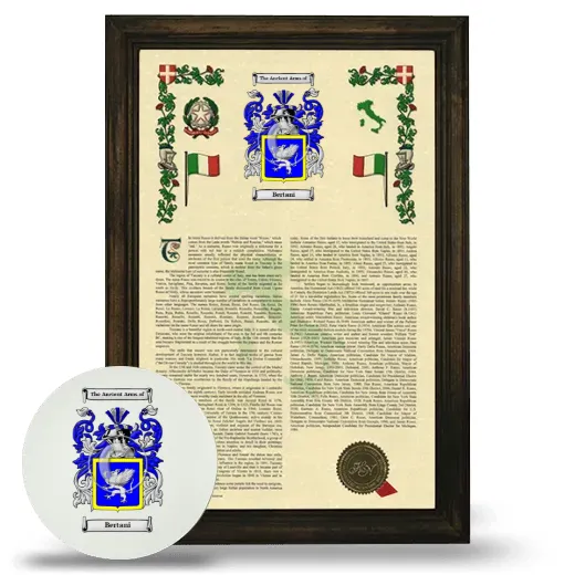 The Armorial is framed with our custom solid 1" wood frame which compliments the earliest rendition of your Coat of Arms, Family Crest, and Surname History.