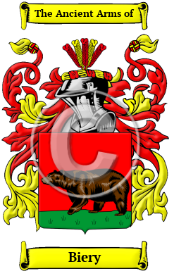 Germany Etymology of BieryWhat does the name Biery mean? The German surname Biery is generally thought to be derived from the word "bier" and "mann, " which translates to "beer-man." Thus the original bearer of the name was likely a tavern owner, a brewer, or someone whose occupation involved beer. Alternatively, the name could have been a nickname for someone who had "bear-like" qualities and in "bear man." Early Origins of the Biery familyThe surname Biery was first found in the region of the Rhineland-Palatinate, where the ancestors of bearers of the Biery surname were an integral part of the local communities, and contributed to the development of the Feudal System that became the backbone of early European society. Records of this surname in Germany date back as far as the thirteenth century. In the year 1290, there were two men bearing this name: Rudolf, and Wernher genannt (called) die Biermenlin in the town of Esslingen. There is also a record of a Werner der Bierman, whose name appeared in a document in Wurttemburg in 1349. Early History of the Biery familyThis web page shows only a small excerpt of our Biery research. Another 25 words (2 lines of text) covering the years 1349, 1772 and 1807 are included under the topic Early Biery History in all our PDF Extended History products and printed products wherever possible. Biery Spelling VariationsSpelling variations of this family name include: Bier, Bierman, Biermann, Behrman, Behrmann and others. Early Notables of the Biery familyAnother 37 words (3 lines of text) are included under the topic Early Biery Notables in all our PDF Extended History products and printed products wherever possible.