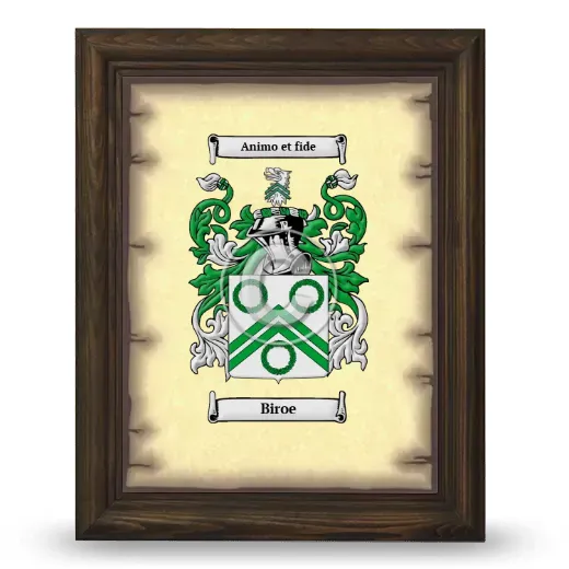 A classic solid wood brown frame with a Coat of Arms and Family Crest most commonly associated with your family's surname. Includes family crest and motto where available!