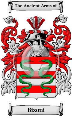 | Bizoni History, Family Crest & Coats of Arms Early Origins of the Bizoni familyThe surname Bizoni was first found in the city of Varese, where earliest records date back to 1277 with the Bizzozzeri family, who were nobility of the city. Early History of the Bizoni familyThis web page shows only a small excerpt of our Bizoni research. The years 1530, 1550, 1561, 1565 and 1586 are included under the topic Early Bizoni History in all our PDF Extended History products and printed products wherever possible. Bizoni Spelling VariationsSurnames that originated in Italy are characterized by an enormous number of spelling variations. Some of these are derived from regional traditions and dialects. Northern names, for instance, often end in "o", while southern names tend to end in "i". Other variations come from the fact the medieval scribes tended to spell according to the sound of words, rather than any particular set of rules. The recorded variations of Bizoni include Bizzarro, Bizarro, Bizzaro, Bizaro, Bizzarri, Bissari, Bizarri, Bizzari, Bizari, Bizzotto, Bizotto, Bizo, Bizzo, Bizoni, Bizzelli, Bizelli, Bizzi, Bizzoni, Bizozzeri, Bizzarini and many more. Early Notables of the Bizoni familyTommaso Bizzocchi, chancellor of the Malatesti House in Rimini during the 15th century
